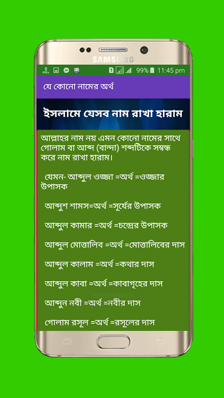 আমাদের আজকের আয়োজন যে কোনো নামের অর অর আমাদের সমাজে লক্ষ্য করলে দেখা যায় কোনো শিশু জন্মগ্রহন করলে শিশুর মা মা এবং আত্মীয় স্বজন শিশুটির কি কি নাম রাখবে সে নিয়ে চিন্তায় চিন্তায় যান।। তাই আপনারা খুব সহজেই যাতে যে কোনো শিশুদের অর্থপূর্ণ এবং একটি সুন্দর নাম রাখতে পারেন তাই অ্যাপটিতে সকল নামের অর্থ তুলে ধরেছি।।।।।।।।।।।।।।।।।।।।।।।।।।।।।।।।।।।।।।।