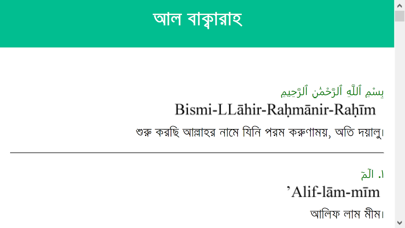 রয়েছে প্রতিটি আয়াতের বাংলা অর্থ।
