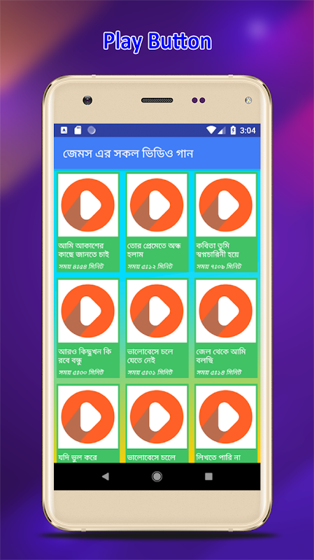 🔹 জেমস এর সকল গানের ভিডিও অ্যাপটির ভিডিও চালানোর জন্য ইন্টারনেট সংযোগের প্রয়োজন হবে।