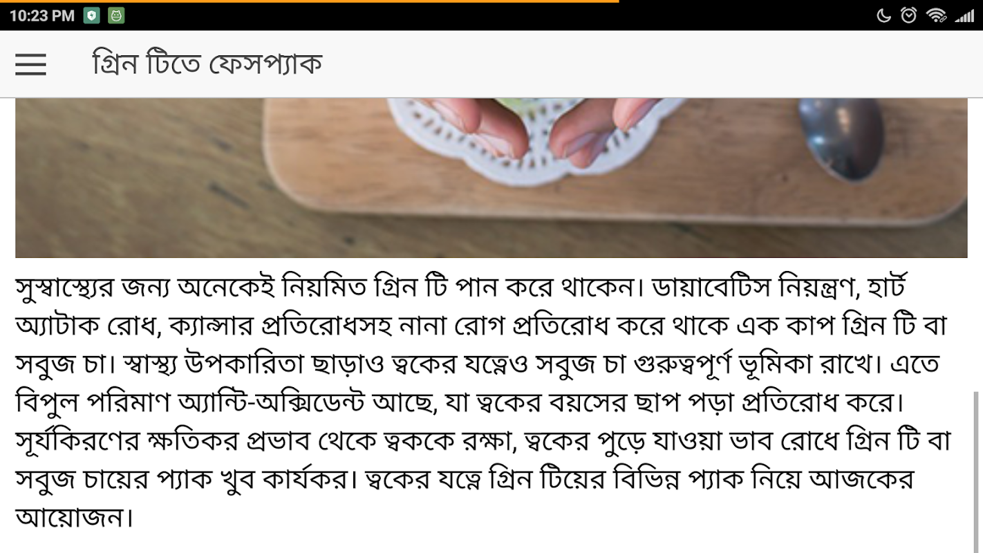 গ্রিন টিতে ফেসপ্যাক 1.2.2