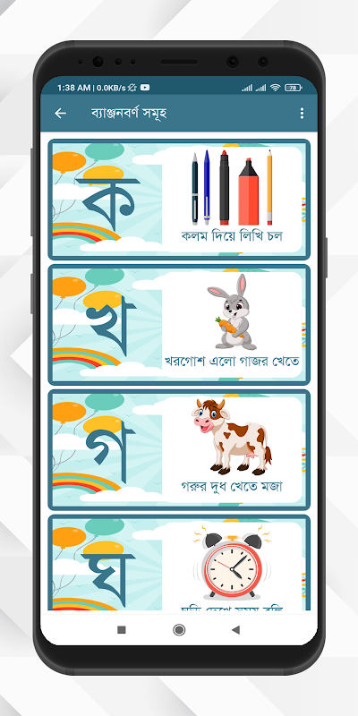 رابط کاربر پسند ما به کودکان این امکان را میدهد تا به طور مستقل در برنامه حرکت کنند و در حین پیشرفت در حروف الفبا، حس موفقیت را تقویت کنند. خواه ردیابی حروف، گوش دادن به صداهای آوایی یا درگیر شدن با داستان های متحرک باشد، هر ویژگی برای پرورش پایه ای قوی در یادگیری زبان بنگالی طراحی شده است.