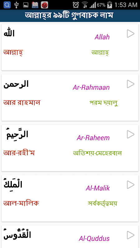 * আল্লাহ্র ৯৯ টি গুণবাচক নামঃ