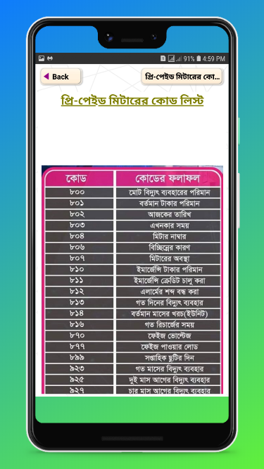 ✓ প্রি-পেইড মিটারের কোড লিস্ট