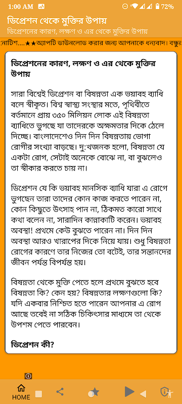 • برنامه‌نما ডিপ্রেশন থেকে মুক্তির উপায় عکس از صفحه