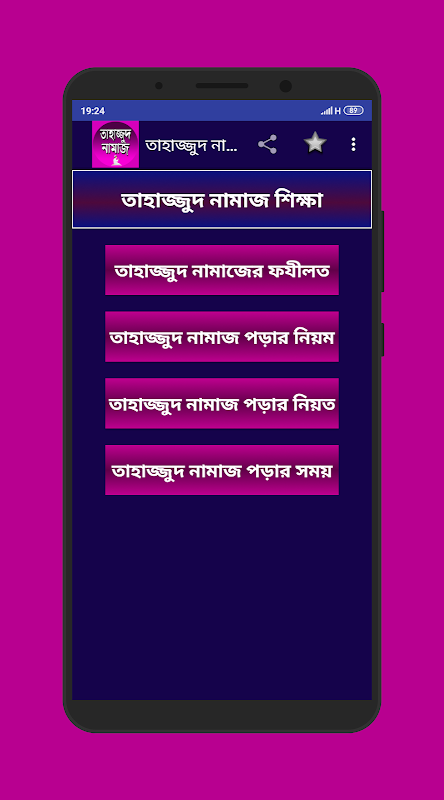 তাহাজ্জুদ নামাজ অ্যাপটিতে থাকে তাহাজ্জুদ নামাজের ফযীলত، তাহাজ্জুদ নামাজ পড়ার নিয়ম، তাহাজ্জুদ নামাজ পড়ার সময়، তাহাজ্জুুদ নামাজ পড়ার নিয়ত