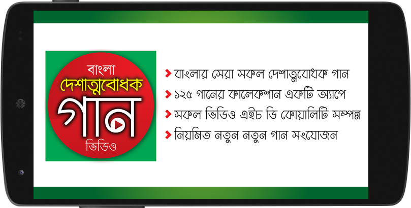 ما این برنامه را برای میهن پرستان توسعه داده ایم لطفاً ویدیوهایی از بهترین آهنگهای میهن پرستی در بنگال را مشاهده کنید. شما باید هر آهنگ از 122 آهنگ میهنی انتخاب شده در برنامه را دوست داشته باشید.