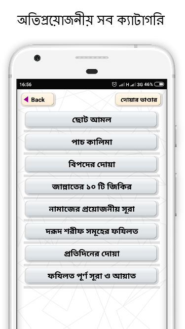 দোয়ার বই একের ভিতর সব দোয়া অ্যাপটি মূলত একটি দোয়ার ভাণ্ডার Doar vandar যেখানে আপনি পাবেন সকল দোয়া Dua bangla ও প্রতিদিনের আমল সহ ছোট সূরাঅফলাইন অডিও সহ একদম ফ্রি।