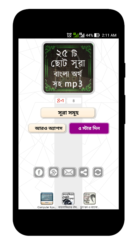 কোরআনের ১ ম সূরা এবং শেষ পারা থেকে ২৪ টি সূরা নিয়ে আমাদের এই অ্যাপ ২৫ টি ছোট ছোট সূরা। জন্য এই ২৫ টি ছোট সুরা খবই প্রয়োজন। 25 سوره کوچک بنگلا যা আপনারা পড়তে ও শিখতে পারবেন। অর্থ সহকারে দেওয়া আছে। আল্লাহর অশেষ রহমতে 25 سوره کوچک mp3 আপনাদের কাছে পৌছাতে পেরেছি। audio এই সবগুলো ছোট সূরা তাই আপনাদের মুখস্থ করতে সুবিধা হবে এবং উচ্চারনে ভূল না না কারন আপনারা পড়ার পাশাপাশি mp3 صوتی আকারে দেওয়া হয়েছে। করি আপনাদের এই অ্যাপটি ভালো লাগবে সুধৃতাই না আপনারা বাংলা সূরা গুলি আমল ও করতে পারবেন। মুসলমানের জন্য এই ২৫ টি সুরা জানা খুবই প্রয়োজন।