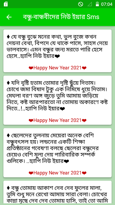 Happy english new year to you, happy new year 2021 in advance. happy thirty first night and happy new year to all of us for the first day of english new year. Happy new year 2021 sms has been arranged to wish you all the best. our new app happy new year sms 2021 has been arranged with beautiful beautiful sms. With the year 2021 in front of us, our new year sms 2021 are arranged a lot with sms, where all selected bangla has been made with sms. our new year sms app. with happy new year sms-2021 app you will also get your parents, siblings, uncles, your friends, emotional and various funny sms. from this app you can select new year sms and share it inside any social networking place or anything by copying. new year sms are selected one by one and sent to friends or everyone else on mobile or social sites can send. there are romantic new year sms of love, sms to break the anger of loved ones, there are also happy new year sms for boyfriends and girlfriends.