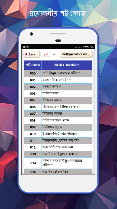 মিটারের তথ্য দেখার শর্ট কোড লিস্ট