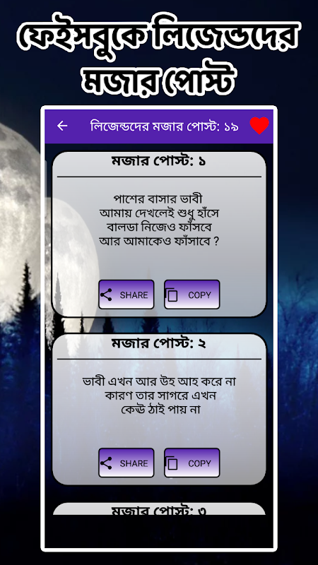 আপনাকে আর মজার মজার পোস্ট খুজতে কষ্ট করতে হবে না কারণ এই অ্যাপসটিতে আছে সেরা সেরা মজার পোষ্ট । অনেক মজার পোস্ট দিয়ে আমাদের এই অ্যাপসটি সাজানো হয়েছে ।