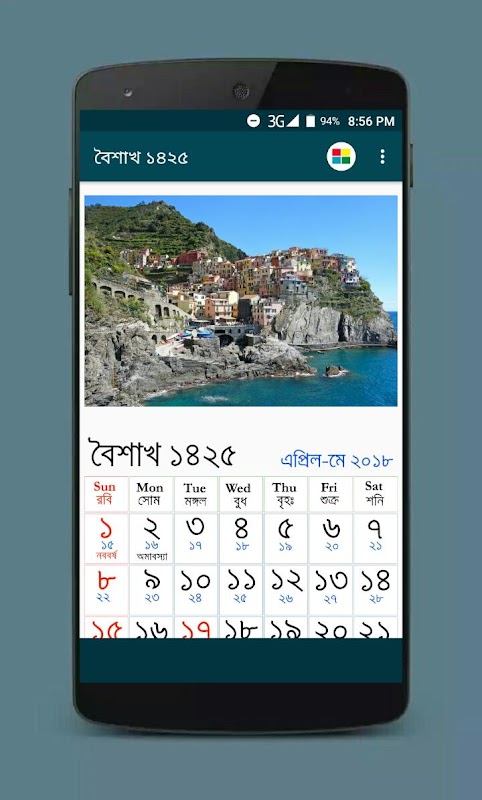 বাংলা আরবি ইংরেজি ক্যালেন্ডার সহকারে আমাদের এই Bengali Panjika 1425 - বাংলা পঞ্জিকা ১৪২৫ অ্যাপটি। বাংলা ইংরেজি আরবি ক্যালেন্ডার