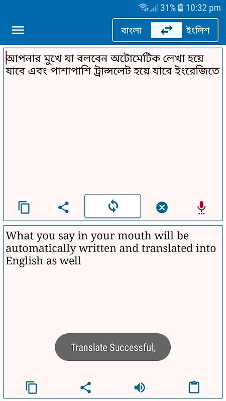 شما می گویید به زبان بنگالی اتوماتیک تایپ می شود و می توانید به انگلیسی ترجمه کنید. این برنامه دارای سیستمی است که به راحتی از بنگالی به انگلیسی ترجمه می کند.