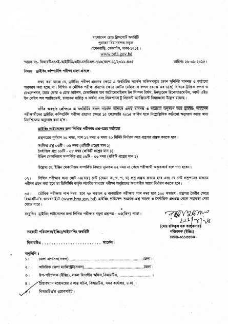+ প্রশ্নসম্ভার-বিআরটিএ