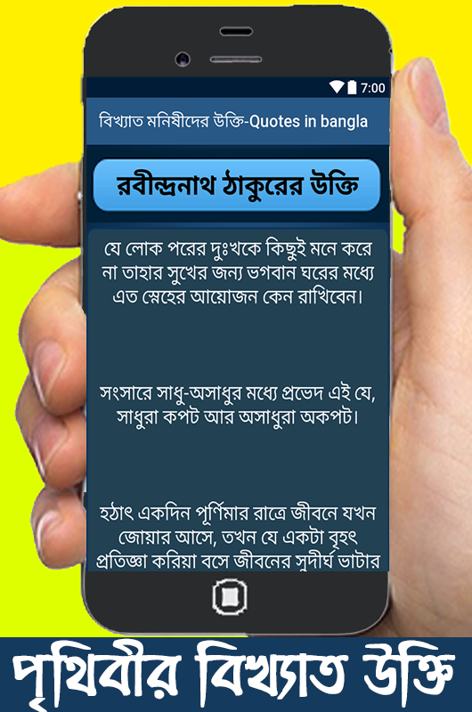 এই অ্যাপ এ বিখ্যাত ব্যাক্তিদের এবং মনিষীদের পৃথিবীখ্যাত সব সেরা সেরা উক্তি আছে।