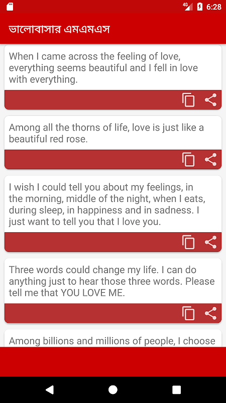 অনেকেই তার বন্ধুদের প্রিয় মানুষ ও ভালবাসার মানুষদের ভালোবাসার এসএমএস পাঠানোর জন্য অনেক ভাল মানের একটি ভালোবাসার এসএমএস অ্যাপ খুজে থাকেন । তাদের জন্য আমাদের এই ভালোবাসার এসএমএস অ্যাপটি ।