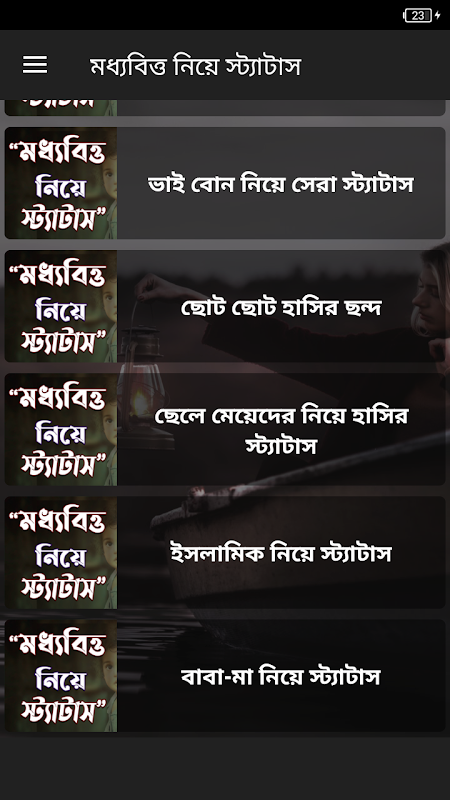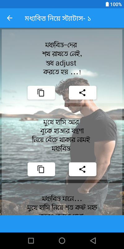 মধ্যবিত্ত নিয়ে স্ট্যাটাস- এই অ্যাপটি বানানো হলো সকলের জন্য- আমাদের সমাজের মধ্যবিত্ত দের জীবন, আশা, স্বপ্ন নিয়ে কিছু সেরা স্ট্যাটাস ও উক্তি শেয়ার করলাম ।