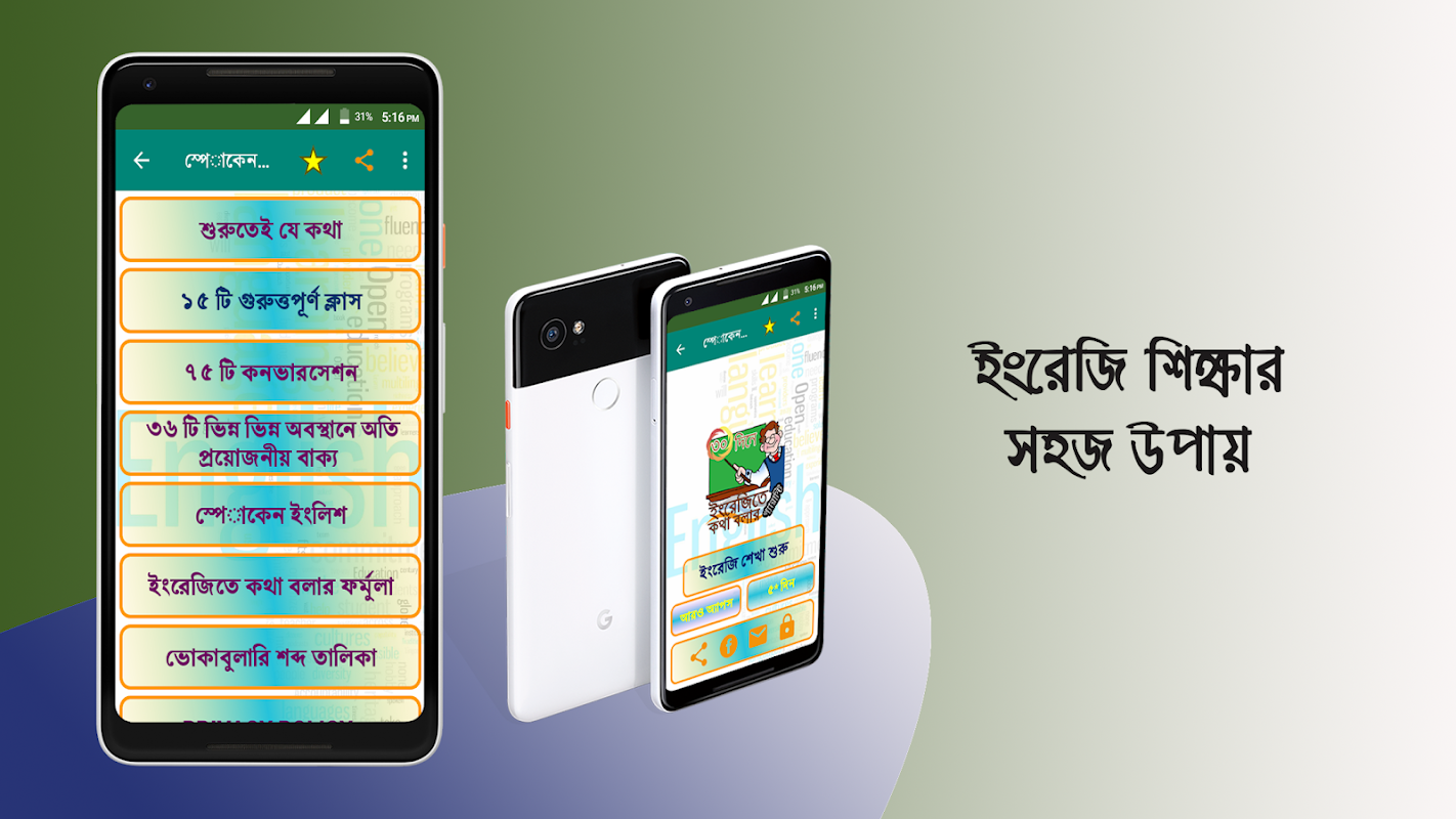 It is an Educational app for learn spoken english from bengali. It provides easy way to learn spoken english app and how to learn spoken english app. It is a pocket book for all time offline apps for how to learn spoken english so you collect it from google play store and learn english in 30 days.