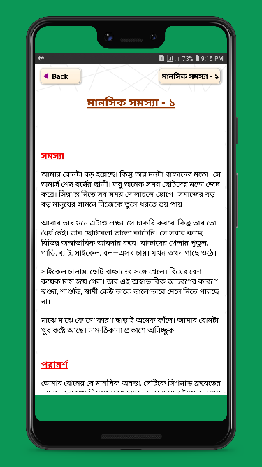 আশাকরি “মানসিক সমস্যা সমাধানে পরামর্শ” শিরোনামের এই অ্যাপটি ব্যাবহার করে আপনারা প্রাত্যাহিক জীবনে অনেক উপকৃত হবেন এবং আত্মীয় স্বজন বন্ধু বান্ধবদের ব্যাবহার করার সুযোগ করে দিবেন।