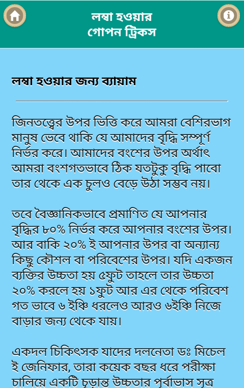 লম্বা হওয়ার গোপন ট্রিকস অ্যাপ এর মাধমে লম্বা হওয়ার কৌশল তুলে ধরা হয়েছে