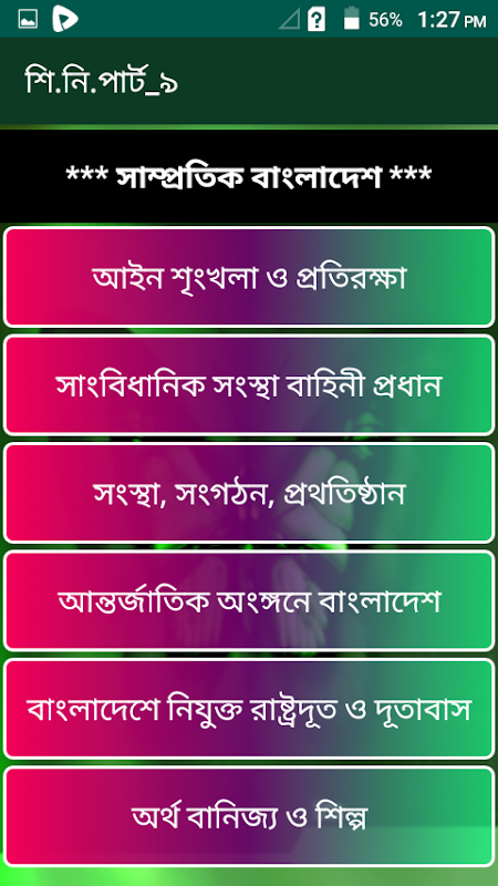 এ পর্বে সাধারনজ্ঞান সাম্প্রতিক বাংলাদেশ ও আন্তর্জাতিকের এক বিশাল ভান্ডার নিয়ে তৈরী করা হয়েছে এ এ্যাপটি।
