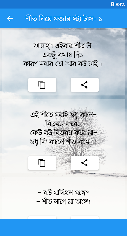 শীতের স্ট্যাটাস ও এসএমএস রয়েছে - নতুন নতুন বাছাইকৃত কালেকশন রয়েছে অ্যাপটিতে।