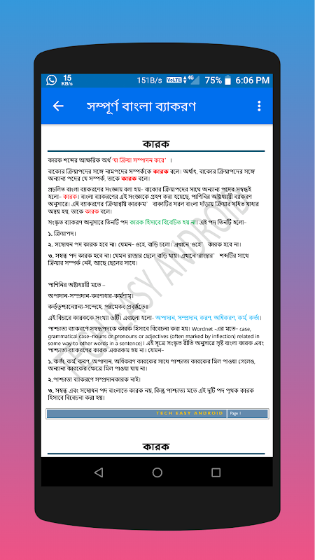 বাংলা ব্যাকরণ জানা আমাদের সকলেরই উচচ আপনারা বাংলা ব্যাকরণ এর সকল বিষয়াদি জানতে পারবেন এই অ্যাপটিতে. বাংলা ব্যাকরন জানা আমাদের প্রত্যেকটি মানুষকে বাংলা ব্যাকরণ এ দক্ষতা অর্জন করা প্রয়োজন. এসব দিক বিবেচনা করেই এই এ্যাপটি নিরা যাতে করে ব্যাকরণের আলোচিত প্রতিটি বিষয় যেমন- বর্ণ، উপসর্গ، সমাস، কাল، পদ، বাক্য প্রভৃতি সম্পর্কে সুষ্পষ্টভাবে জানা যায়. বাংলা ব্যাকারন এর সকল বিষয়াদি খুব সুন্দর ভাবে এই অ্যাপটিতে জানানো হয়েছে.বাংলা ব্যাকরণ বই হচ্ছে বাংলা ভাষা জানার ও শিখার উত্তম উপায়.