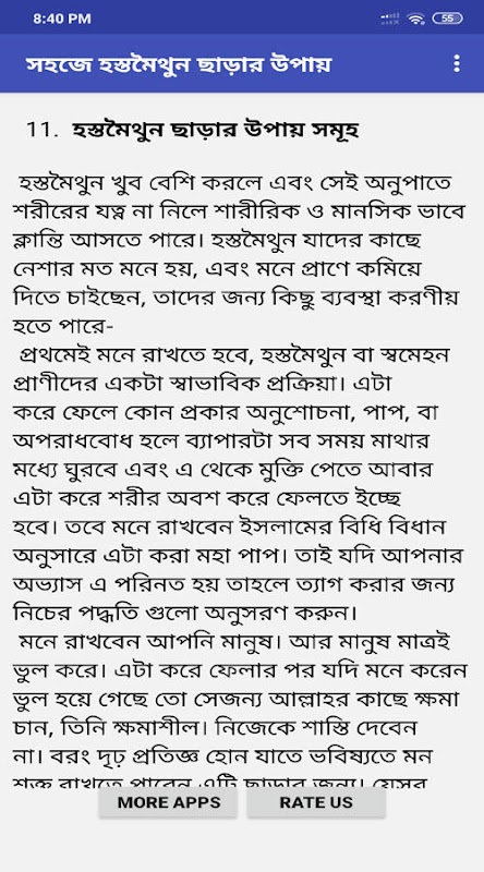 আমাদের এই এপ্রিকেশনটির মাধ্যমে আমরা আপনাদের জানাতে চেস্টা করবো কি ভাবে আপনারা এই হস্তমৈথুনে থেকে পরিত্রান পেতে পারেন এবং এর ক্ষতির দিকগুলো সম্পর্কে জানতে পারেন। আমরা বিভিন্ন বিশেষজ্ঞদের মতামত ও পরামর্শ আপনাদের কাছে তুলে ধরার চেষ্টা করছি মাত্র। আমাদের সাথে থাকার জন্য ধন্যবাদ।