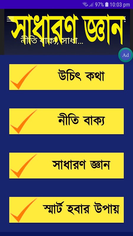জ্ঞানের ভান্ডার, নীতি বাক্য, উচিৎ কথা ও স্মার্ট হবার জন্য এ্যাপটি ব্যবহার করুন।