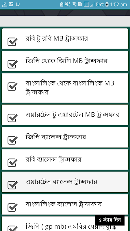 তাই হাতের নাগালে প্রজনীয় এসব এক্টিভেশন কোড পেতে ডাউনলোড করে রাখুন আমাদের এই টাকা এমবি ট্রান্সফার এপস টি। এপসটিতে সকল অপরেটরের টাকা আর এমবি ট্রান্সফার এর নিয়ম গুলো সুন্দর করে সাজানো রয়েছে।
