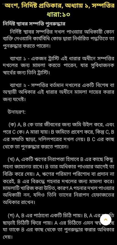 "সুনির্দিষ্ট প্রতিকার আইন, ১৮৭৭" اطلاعات مفصلی را در مورد آخرین اصلاحات Bangladesh, از جمله آخرین قانون امداد رسانی خاص، ارائه می دهد. این برنامه رایگان و آفلاین اطلاعات حقوقی بنگلادش را بر اساس بخش و فصل ارائه می دهد.