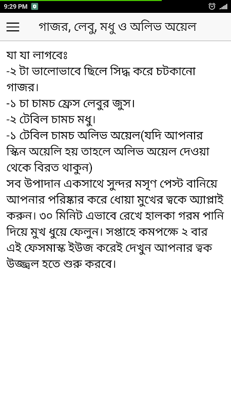 اطلاعات সুন্দর ত্বকের জন্য গাজরের ফেসপ APK