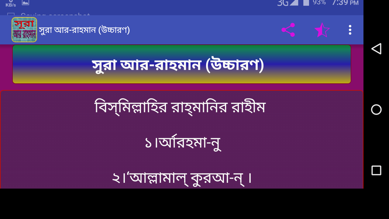 অ্যাপলিকেশন টি তে সূরা রাহমান বাংলা উচ্চারণ সহ পাবেন।