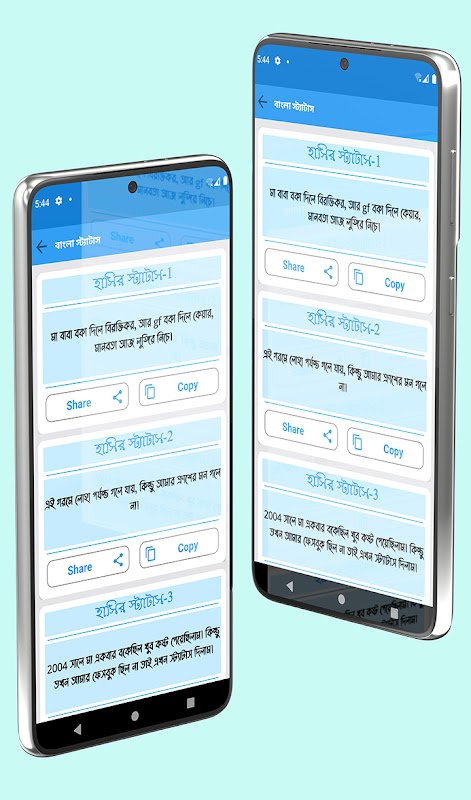আমাদের এই স্ট্যাটাস অ্যাপটিতে ৪৬ টি ভাগে ভাগ করা হয়েছে এবং প্রত্যেকটি ক্যাটাগরিতে ৬০ টি করে স্ট্যাটাস আছে।। এই অ্যাপটিতে সবগুলো স্ট্যাটাস এসএমএস ক্যাপশন হিসাবেও ব্যাবহার করতে পাবেন।। এখানে প্রায় ২৮০০ اس ام اس দেওয়া আছে । আপনাকে আর বিভিন্ন ধরনের sms app নামাতে হবেনা ، একটি অ্যাপেই সকল সমস্যার সমাধান।।