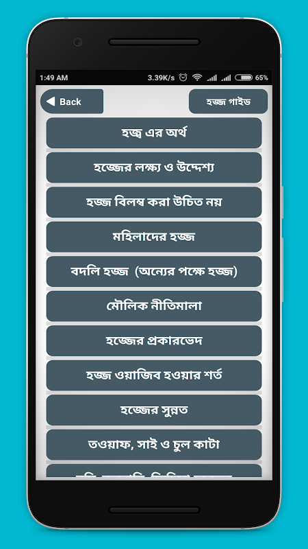 হজ্জ ইসলামের পাঁচটি স্তম্ভের একটি। হজ্জের নিয়মাবলী, হজ্জ করার সহিহ নিয়ম সঠিকভাবে এখানে পাবেন যা হজ্জ গাইড- Hajj Guide হিসেবে কাজে আসবে। হজ গাইড হিসেবে হজ্জের দোয়া, হজ্জের নিয়ম ,ইতিহাস hajj guide, হজ্জের সব প্রস্তুতি ও হজ্জের নিয়ম Hajj Guide Bangla ইত্যাদি জরুরী জিনিস নিয়ে বানানো এই বাংলা এপস ।