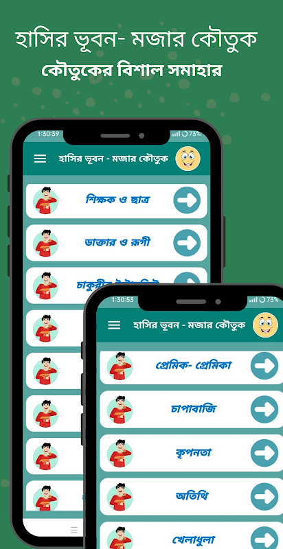 این برنامه جوک های برتر بنگالی را انتخاب کرده است تا شما را سرگرم کند و لبخندی بر لبان شما بیاورد. شما به راحتی می توانید جوک های مورد علاقه خود را از این جوک ها با دوستان خود به اشتراک بگذارید. همچنین می توانید این جوک ها را در اس ام اس کپی کنید یا در شبکه های اجتماعی مختلف به اشتراک بگذارید تا شادی خود را با عزیزان خود به اشتراک بگذارید.
