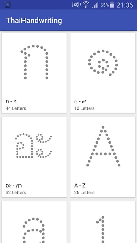 Handwriting تایلندی یک برنامه کاربردی برای معلمان، والدین است که می خواهند کودکان را چگونه در تایلندی، الفبای انگلیسی و اعداد یاد بگیرند. کودکان می توانند تصاویر و صداهای رنگی را که برای یادگیری آسان تر کمک می کنند، لذت ببرند.