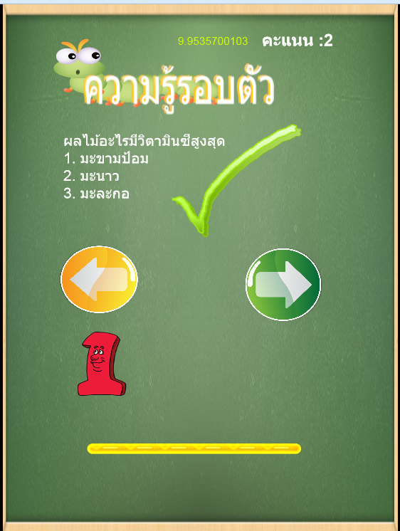 -ตอบถูกจะขึ้นเคื่องหมายขีดสีเขียว พร้อมปุ่มถัดไป