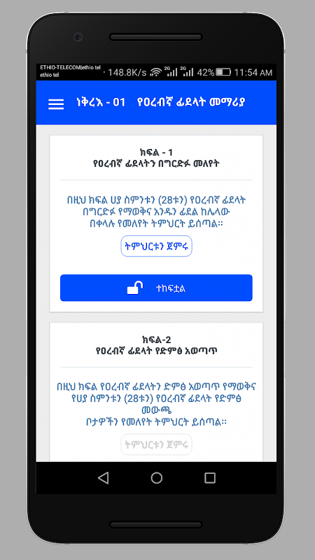 አፕልኬሽኑ ለተጠቃሚዎች ምቹ እና ውጤታማ እንዲሆን ታስቦ ተያያዥ በሆኑ አራት ክፍሎች ተከፍሏል፡፡