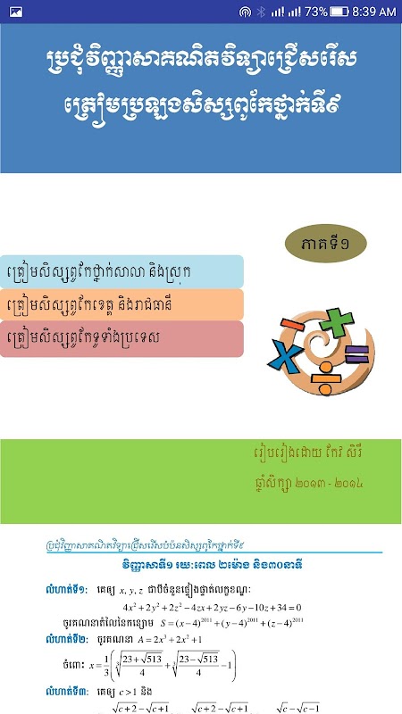 1. វិញ្ញាសាវប្បធម៌ទូទៅសិស្សពូកែទី៩ និងទី១២