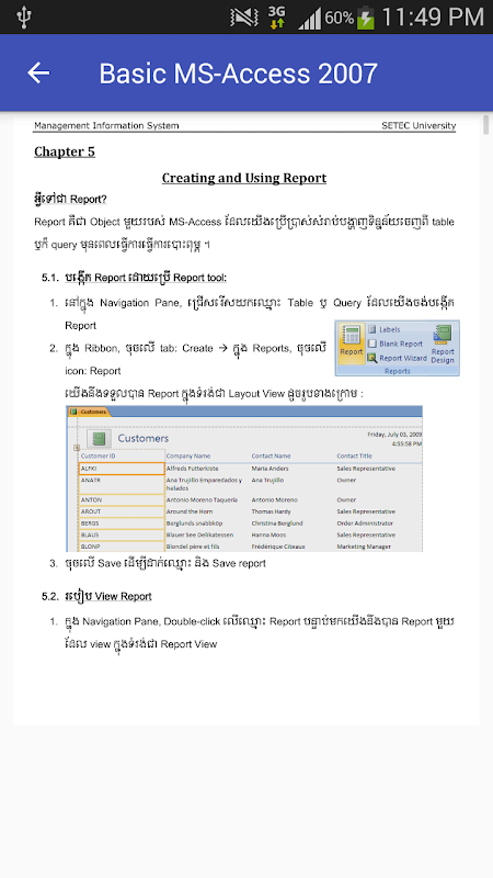 កម្មវិធីនេះបានដកស្រង់ចេញពីសៀវភៅមេរៀន Basic MS-Access 2007 របស់ SETEC University ហើយត្រូវបានរៀបចំជាផ្នែកៗ ងាយស្រួលដល់អ្នកដែលប្រើប្រាស់ស្មាតហ្វូន។