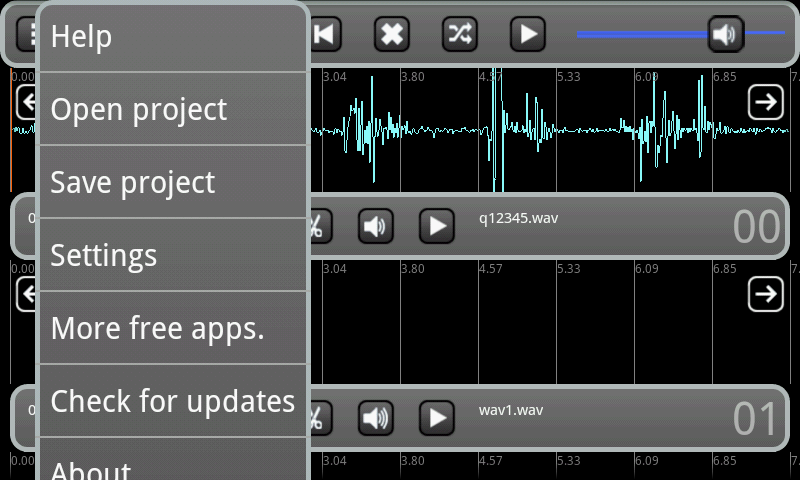 - Testee بازتولید آهنگ به صورت جداگانه و یا همه با هم و تنظیم حجم هر