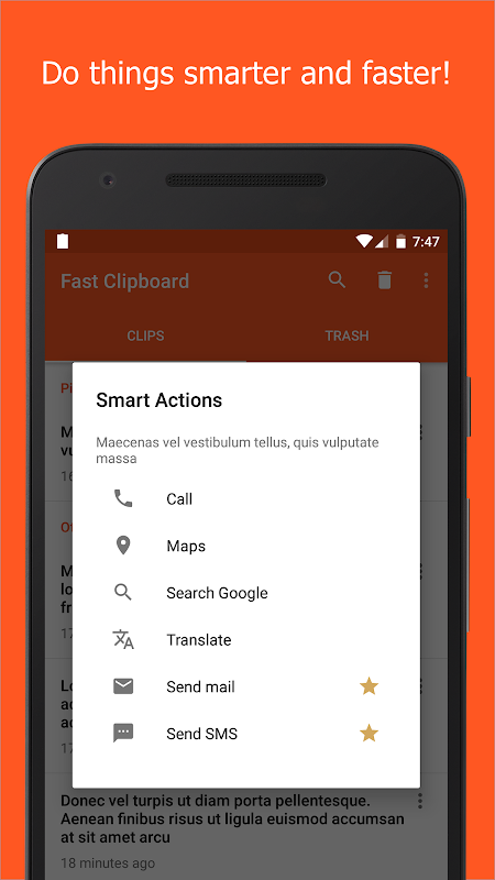 ★ Smart Actions: Do fast and smart actions with your clips, forget about many actions to simple things like a call.