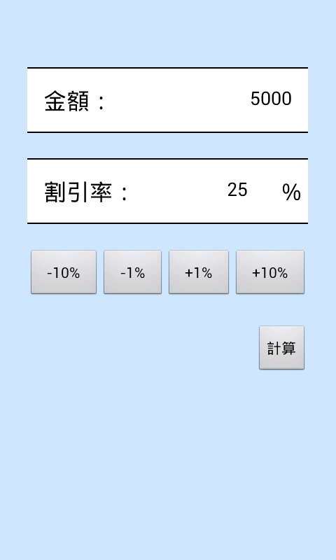 操作は簡単、金額を入力し、割引率を指定するだけ!