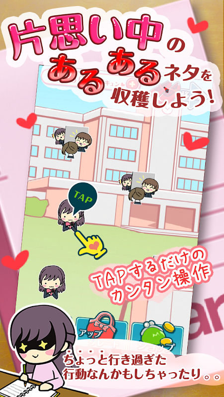 『片想いあるある』は簡単なタップ操作だけで出来ちゃう放置系収穫ゲームです。