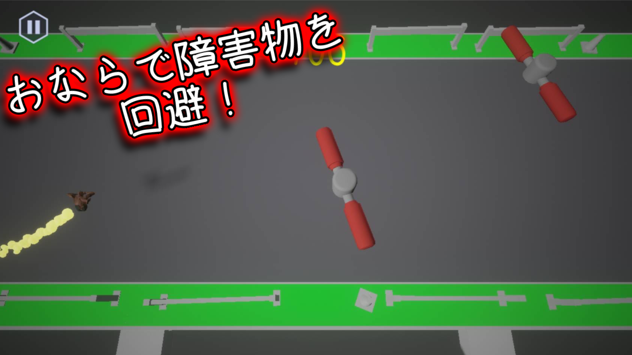 このアプリは、おならが無限に出る男性が、生き残るために様々な障害物を避けながらスコアを伸ばしていく無料ゲームです。