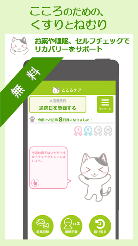 "مراقبت Kokoro" یک برنامه کاربردی است که از طریق مدیریت عملکرد خود از جمله "جلوگیری از فراموش کردن مصرف نوشیدنی"، "خاطرات خوابیده"، "چک کردن خود" و "اطلاعیه اطلاعیه" پشتیبانی می کند. شما می توانید گزارش های روزانه را به صورت گزارش ماهانه چاپ کنید یا آنها را از طریق ایمیل ارسال کنید، بنابراین می توانید از آنها برای برقراری ارتباط در زمان مشورت استفاده کنید.