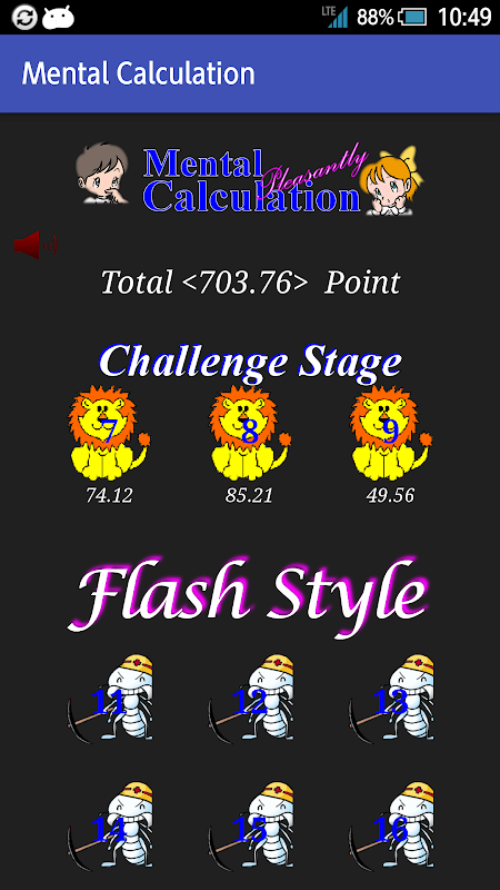 最初のステージから順にクリアしていかないと、先には進めません。たのしみながら計算力がつきます。