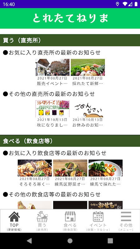 علاوه بر اطلاعات کشاورزی ، ما اطلاعات جدیدی مانند اطلاعات مربوط به رستوران ها و فروشگاه های خرده فروشی با استفاده از محصولات کشاورزی Nerima و اطلاعات مربوط به رویدادهای منطقه خرید را در اختیار شما قرار می دهیم! !!