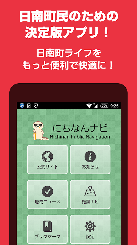 にちなんナビは、日南町民のための生活情報アプリです。「暮らしに便利な情報を通知でお知らせ」「地域ニュースや最新の行政情報」「公共施設等へのナビ」など情報満載!